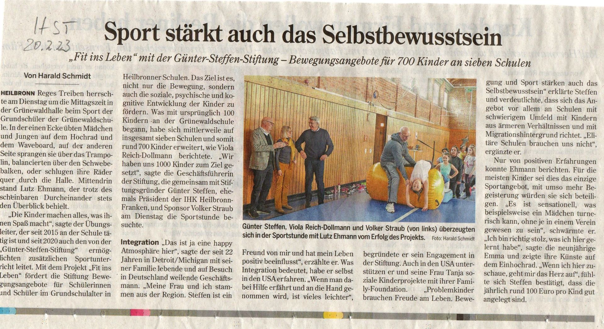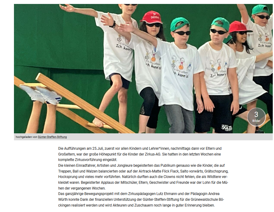 Vor allem turnerisch entwickeln sich Grüzi- und SimsalABö-Kinder immer weiter. Die Präsentation mittels Video auf Einladung der Stiftung wurde entsprechend honoriert. Weitere Sponsoren bekundeten Interesse, die Stunden zusätzlich zu fördern, nachdem sie den Trainingsbetrieb besucht hatten. Inzwischen wurde ein beachtliches Niveau erreicht, was mit gelungenen Auftritten bei der Rektoreneinsetzung Alt-Böckingen, den Schulfesten und beim Seeräuberfest gezeigt werden konnte. Die Einladung weiterer Stadträte zeigte die gewünschte Wirkung. Das Amt lenkte bzgl. der Budgetstreichung ein und finanziert einen Teil der beiden Projekte inzwischen durch andere Gelder städtisch verwalteter Stiftungen. Ein Motoriktest an der Grundschule Alt-Böckingen zeigte, dass die Kinder trotz Pandemie und fehlender Bewegungsmöglichkeiten überdurchschnittlich abschnitten. An dieser Schule ist Übergewicht und Adipositas ein großes Problem. Die Grünewaldschule erreicht beinahe wieder einen Anteil übergewichtiger Kinder wie vor der Pandemie. Eine zusätzliche Klasse an der Grünewaldschule verschärft das Problem mangelnder Hallenkapazität. Eine reine Sportlehrkraft ohne Lehrerausbildung eröffnet neue Möglichkeiten, um alle Heilbronner Kinder in den Genuss des Projektes kommen zu lassen.